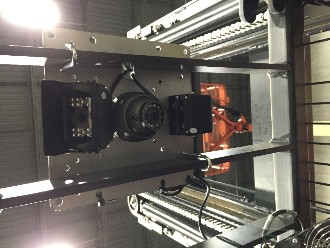 - Video recording unit (left) and cameras (middle), mounted on plate – installed on Order Picker